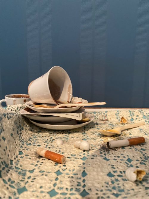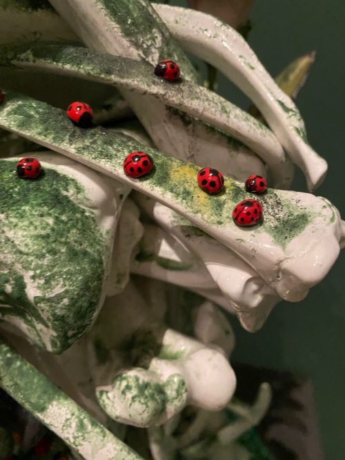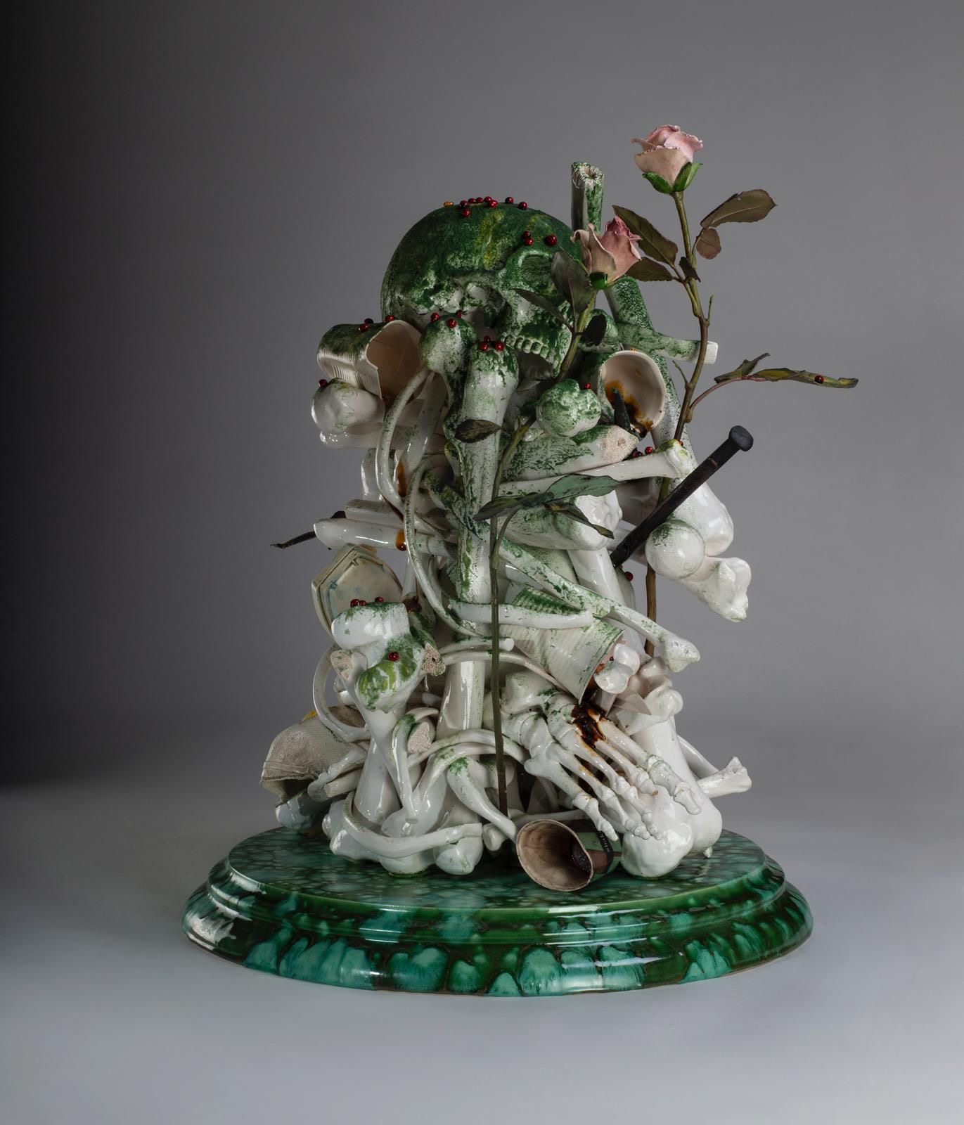 All’interno di questo universo visivo caratterizzato da eccesso e accumulo, in cui il dettaglio minuzioso convive con la caoticità del rifiuto, la ceramica si configura come un campo di sperimentazione privilegiato, assottigliando il confine tra preziosità e degrado, ordine e disordine, bellezza e bizzarria.