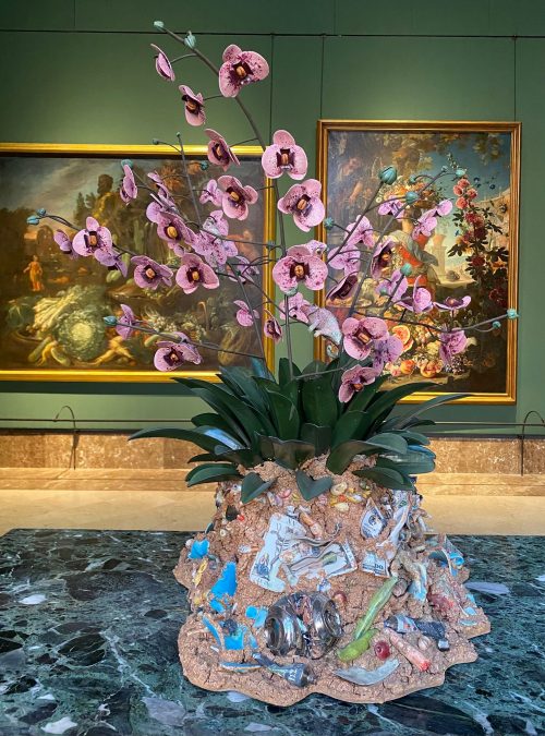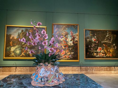 A oltre quarant’anni di distanza da quel primo e significativo incontro con le maggiori espressioni dell’arte del Settecento napoletano, tornano a Capodimonte con la mostra Metamorfosi, una selezione di circa venti opere, tra prestiti da collezioni private e inediti realizzati appositamente per Capodimonte, in particolare Rocco (2025) – opera scelta come immagine-guida della mostra e che apre il percorso espositivo, inserita nel suggestivo Salottino pompeiano – e la colorata e strabordante opera Fenicottero degli stracci (2025), rivisitazione in ceramica policroma della nota Venere di Michelangelo Pistoletto.