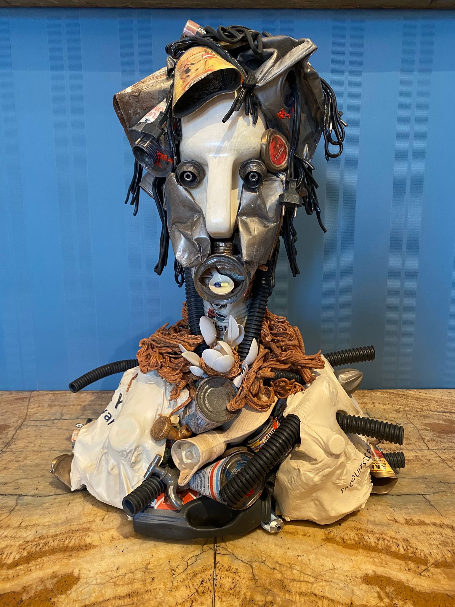 Il percorso prosegue al secondo piano con l’opera Grottesca (2013), esposta nella sala 93 accanto a due straordinari esempi della tradizione ceroplastica meridionale: la Testa decollata (seconda metà del XVIII secolo), con capelli naturali e occhi in vetro, e la Figura femminile in decomposizione o Vanitas (ultimo quarto del XVII – inizi XVIII secolo).