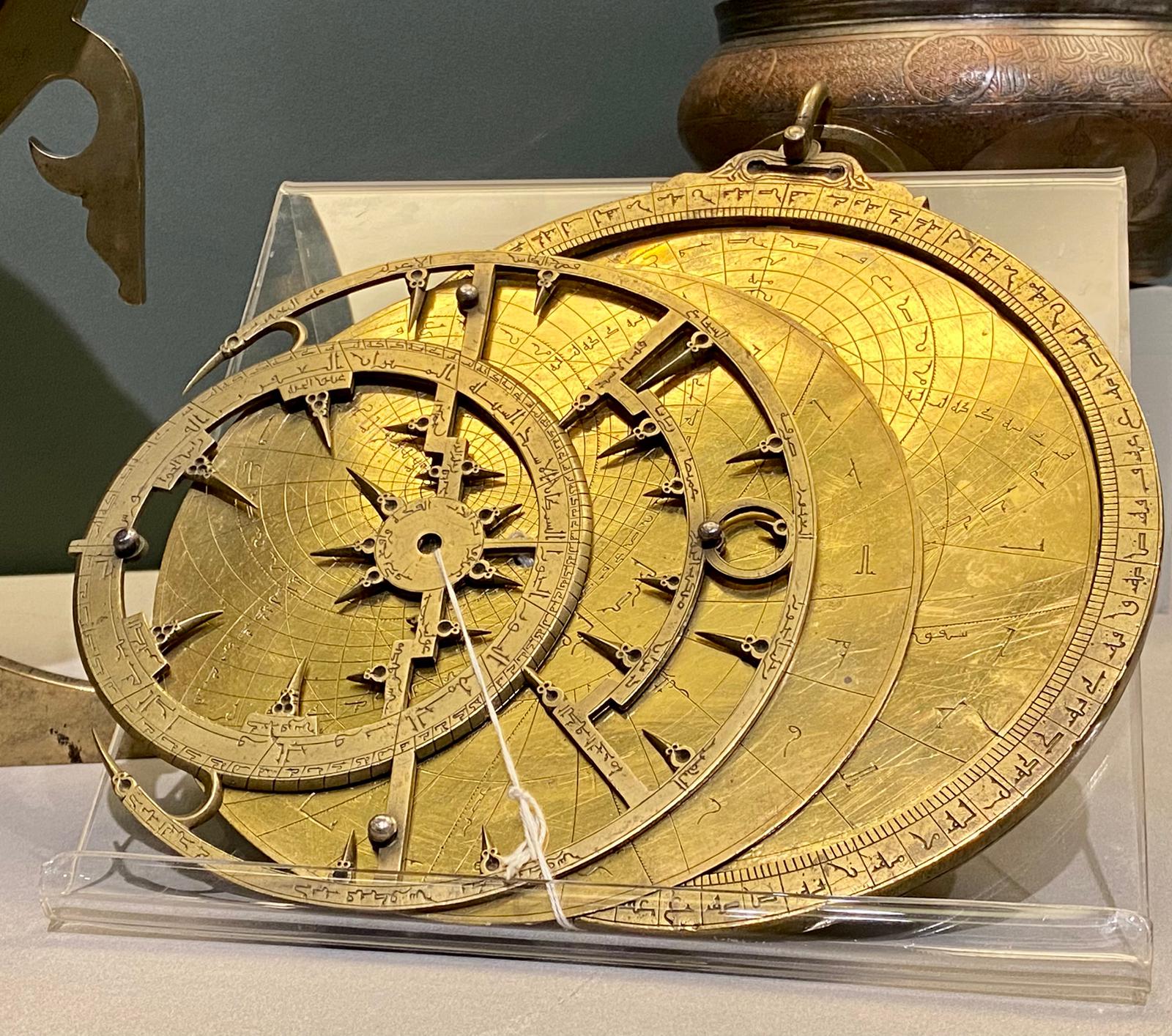 La costruzione di globi celesti a scopo didattico fu una delle attività più distintive degli astronomi arabi, a cui si deve la creazione di oggetti astronomici nel medioevo, come gli astrolabi, anch’essi esposti in vetrina ai lati del globo.