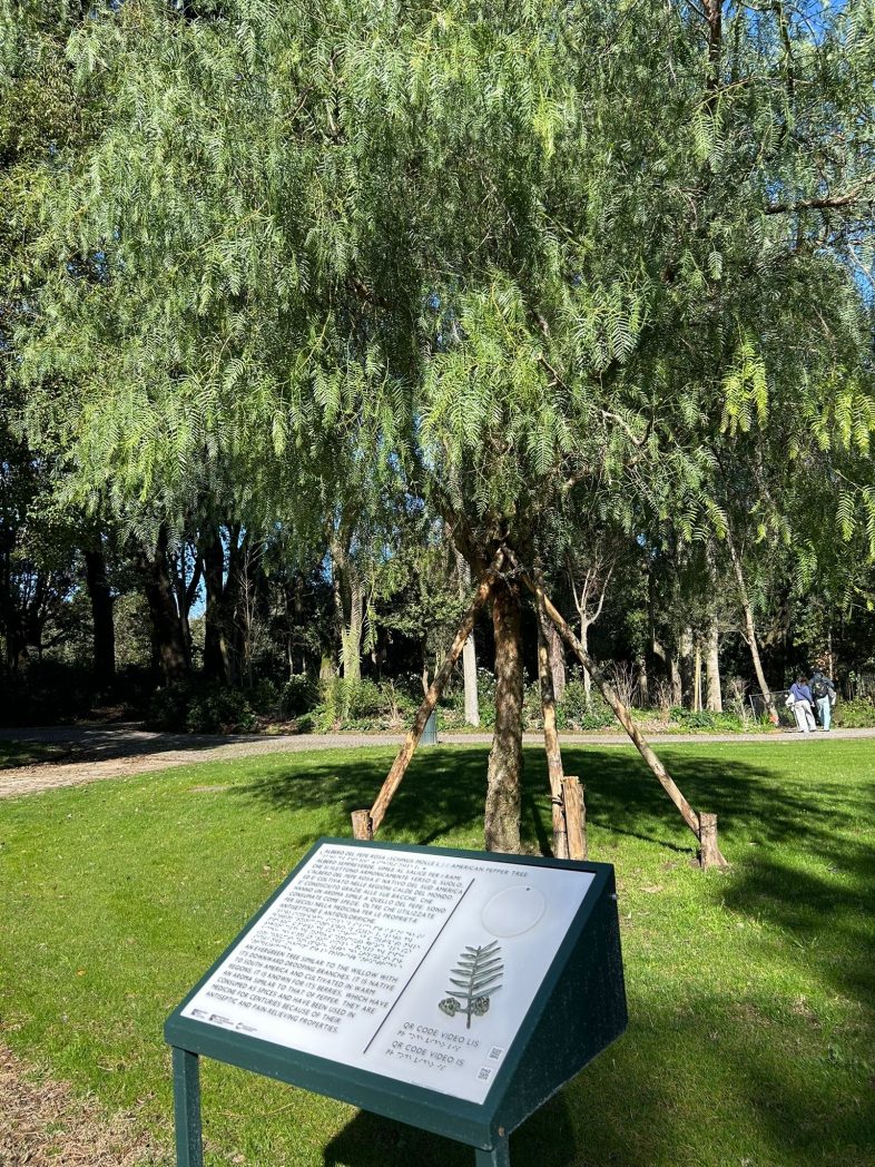 Pepe Rosa – Descrive la specie profumata del Giardino dei Principi, con qr code che rimanda al video LIS sulle specie vegetali del Bosco e lo sportello per l’esperienza olfattiva dell’essenza.